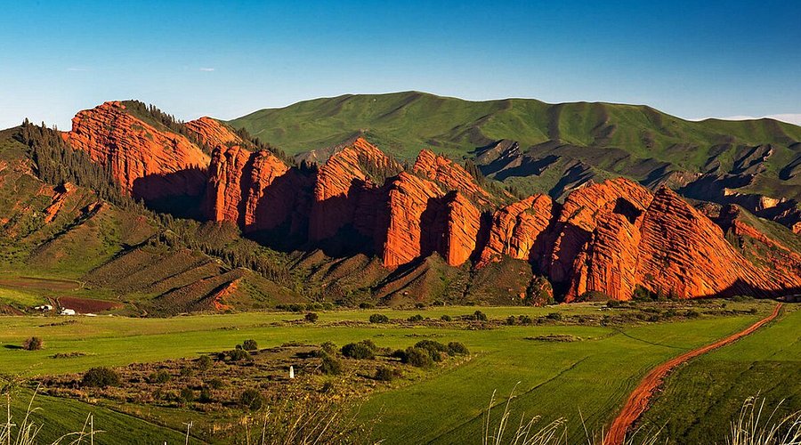 - Discover the Seven Bulls – a famous natural rock formation in Kyrgyzstan located in the beautiful Jeti-Ögüz valley near Issyk-Kul Lake. These large red rocks look like seven bulls standing together and are connected with a local legend