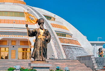 BF at the hotel. Then drive to Karakala (129km, 2h) via the Syunt-Khasardag nature reserve to see Moon Mountain. You will experience the Moon's surface on Earth with outstanding landscapes. A traveller may think that he/she is on the moon or some mysterious planet due to the unusual landscape. These mountains look extremely amazing: they have rounded, swollen shapes, pinkish-cream or grey, almost white colours, which create a rainbow after the rain depending on the humidity level. Then drive to Nokhur mountain village (150km). The village itself fills a small depression valley in the mountains of the Kopet Dag Range, Apart from the main street through the middle of the town, the streets are so narrow that they only just fit a car between the high stone retaining walls on each side. The Nohkuri people who populate this remote mountain village are quite different to other Turkmen tribes. According to legends, this was the place where Noah’s Ark moored and all animals were let out and various seeds were planted. Indeed, the nature of Nohur differs from the surrounding places. Visit the great tree and one of the unique cemetery, which is isolated. Nearly every grave is marked by a wooden post decorated with the horns of a mountain goat. Make your sacred wishes visiting wish tree named after Kyz Bibi. Drive to Ashgabat. Overnight at hotel.