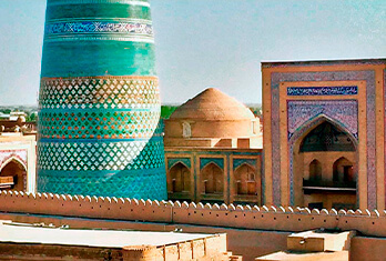 Breakfast at the hotel. We will begin with the visit of the Ichan-Kala architectural complex: Kalta Minor, Kunya Ark Castle, Mohammed Rahim Khan Madrasa, Islom Khodja Madrasa and Madrasa, Tash Hovli Architectural Complex, Pahlavan Mahmud Mausoleum, Mosque, Madrasa Allikulikhan. Lunch. Drive to Shavat border. Our representative will meet you at the Turkmen/Uzbek border. Dinner. Overnight in Dashoguz.
