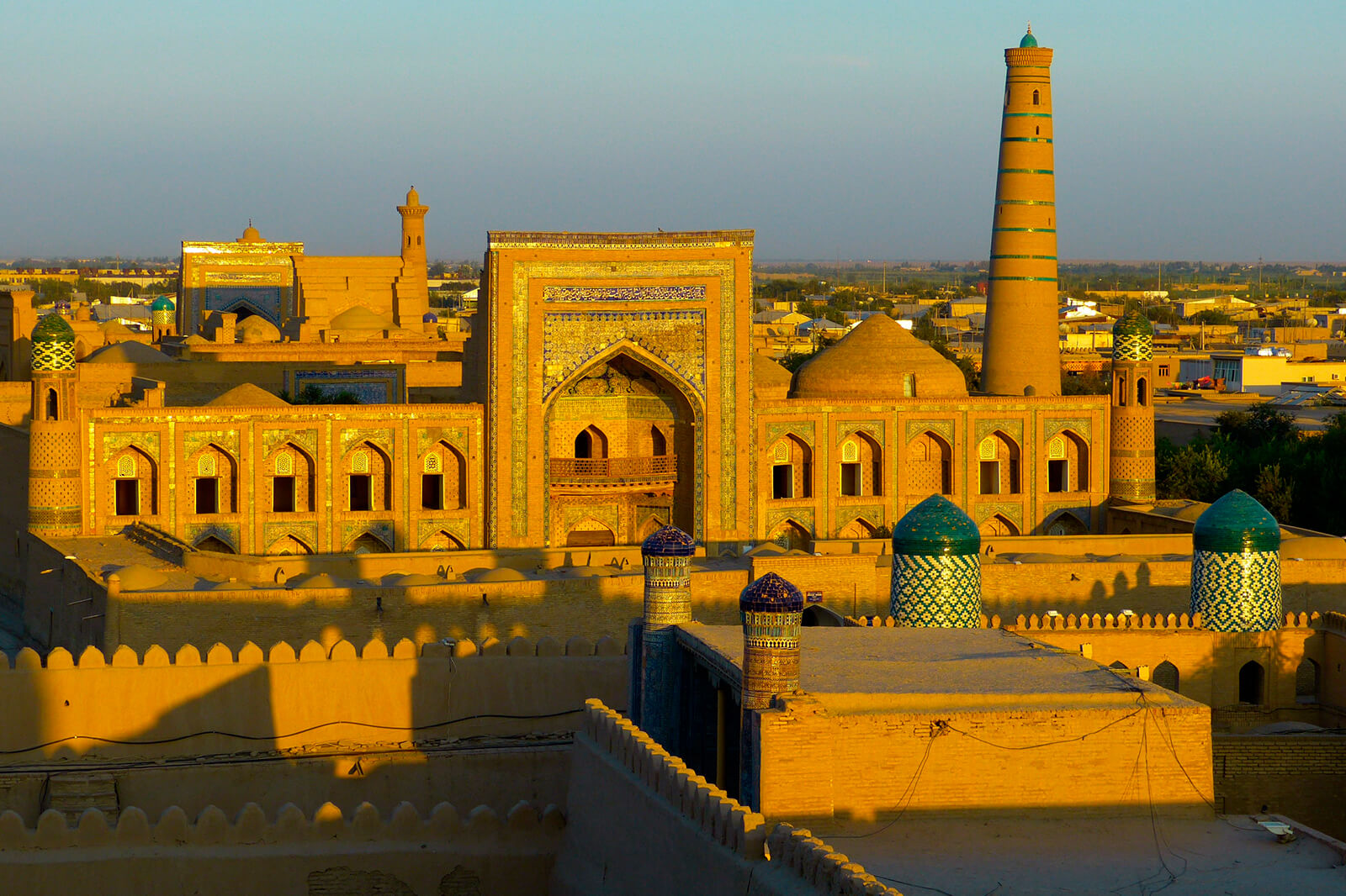 Breakfast. Morning flight to Urgench (07:00-08:30). Transfer to Khiva (30km). Start the city tour. Sightseeing tour in Khiva: Kunya-Ark fortress, including Kurinish Khana (17c); Mohammed-Amin-Khan (19c) Madrassah, Islam Khodja Minaret; Palvan-Kari complex, Abd Al Bobo complex (18c), Rafanek Madrassah, Mohammed Rakim Khan (19 c), Amir-Tur Madrassah, Sho-I-Kalandar Bobo Mausoleum. Lunch on self-arrangement. Sightseeing tour in Khiva: Mazary Sharif Madrassah, Kheivak well (10c), Uch Avlioli (“three saints”) Mausoleum, Juma Mosque (18c), Kutluq-Murad Inaq (19c) Madrassah, Pakhlavan Mahmoud Mausoleum, Tash Hauli (“stone yard”) Palace, Alla-Kuli-Khan (18c), Arab Mohammed Khan (18 c) Madrassahs. Dinner on self-arrangement