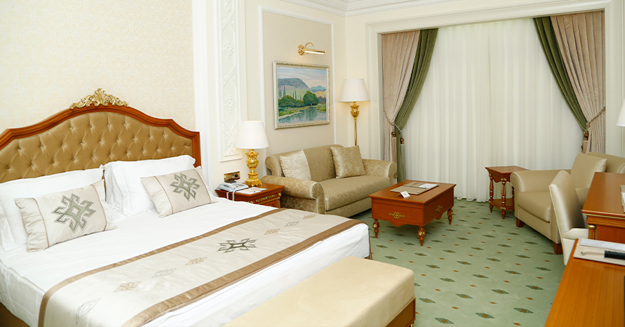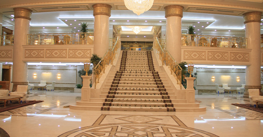 Archabil Hotel is a luxurious hotel of the international class, which meets the highest standards by all parameters. The hotel is situated on the southern outskirts of Ashgabat in the new business part of the town. This high building made of white marble has become an integral element of local landscape and a symbol of new business Ashgabat. The hotel is a real oasis amidst the city. Fountains, numerous green areas, swimming pools make the air cleaner and fresher. The elegant interiors of the hotel create a unique atmosphere of luxury and prosperity