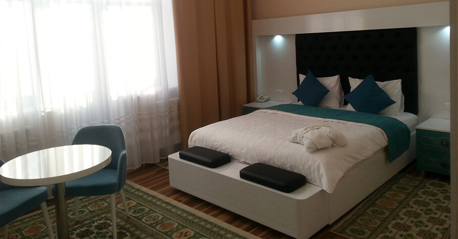 The hotel "Yüpek yoly" was founded in 2018. The hotel "Yüpek yoly" has an ideal location in the city of Turkmenabat. ”Yüpekoly" is located 50 meters from the central Bitarap Turkmenistan Street (former Kostandova Street), 2 blocks from the old airport and 3 blocks from the large shopping market. ”Yüpekoly" is positioned as a complex of establishments – a business hotel with a wide range of services, and a chain of restaurants with a variety of cuisine and professional service. The hotel has private parking. Various services are available at the hotel. For business people, the hotel has a conference room for conferences equipped with modern equipment, with the provision of professional staff. And for those who want to relax in the hotel's arsenal: 4 restaurants with different designs and cuisine from different countries. In the lobby bar of the hotel you can enjoy a wide range of alcoholic beverages and rare varieties of tea and coffee, or spend time in the rooftop bar with a panoramic view